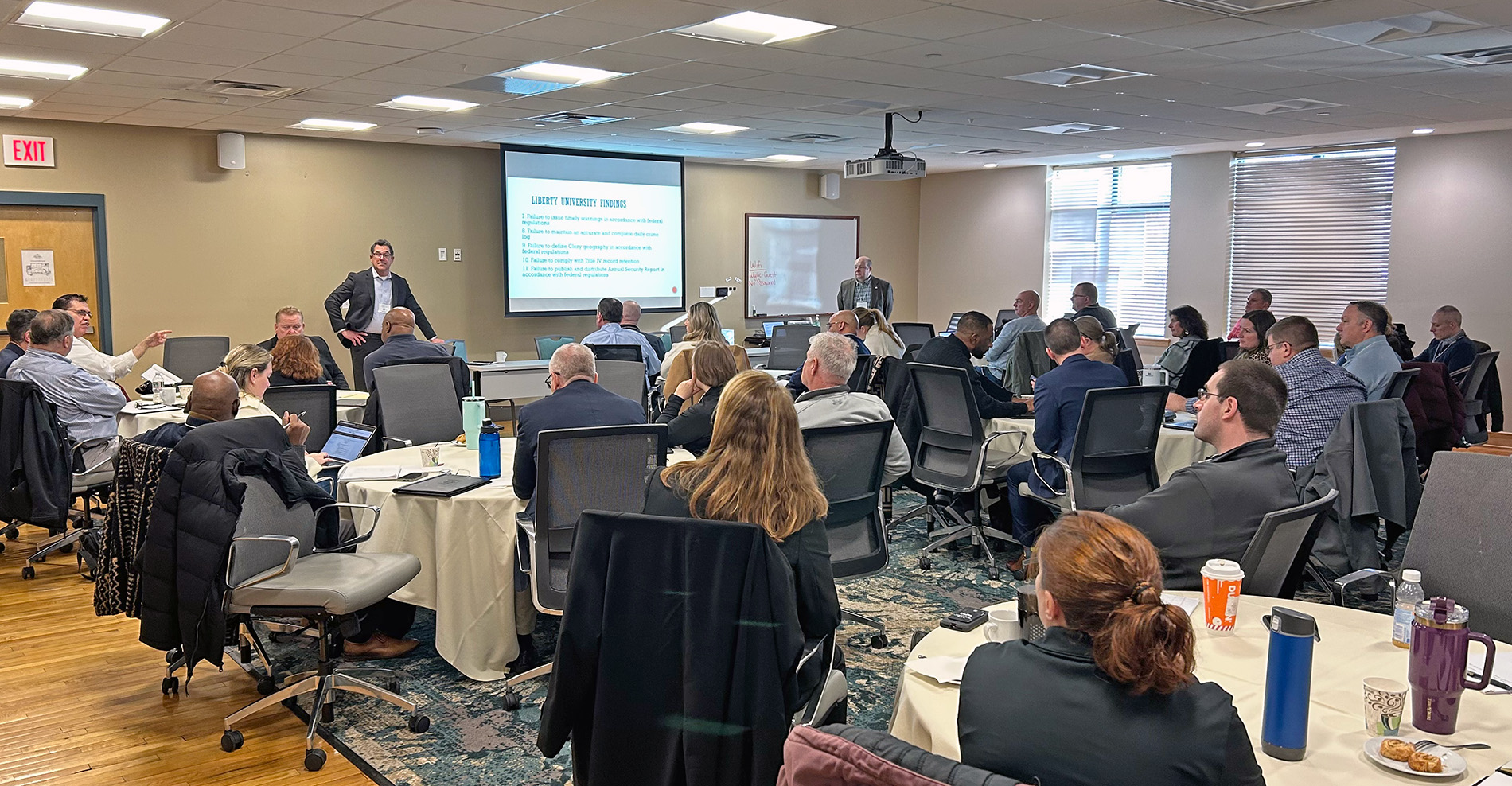 Approximately 50 participants took part in training at Endicott College on the Jeanne Clery Campus Safety Act and the Stop Campus Hazing Act. (Courtesy MACLEA)